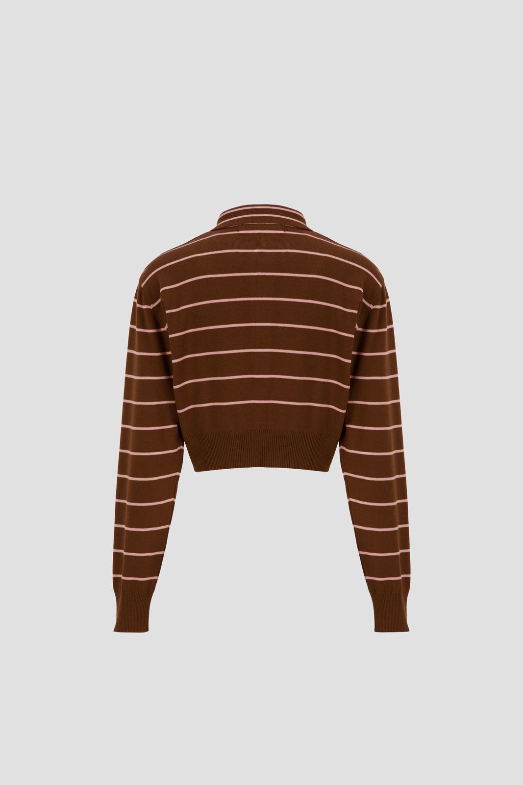 Long Sleeve Cropped Polo - Brown x Pink