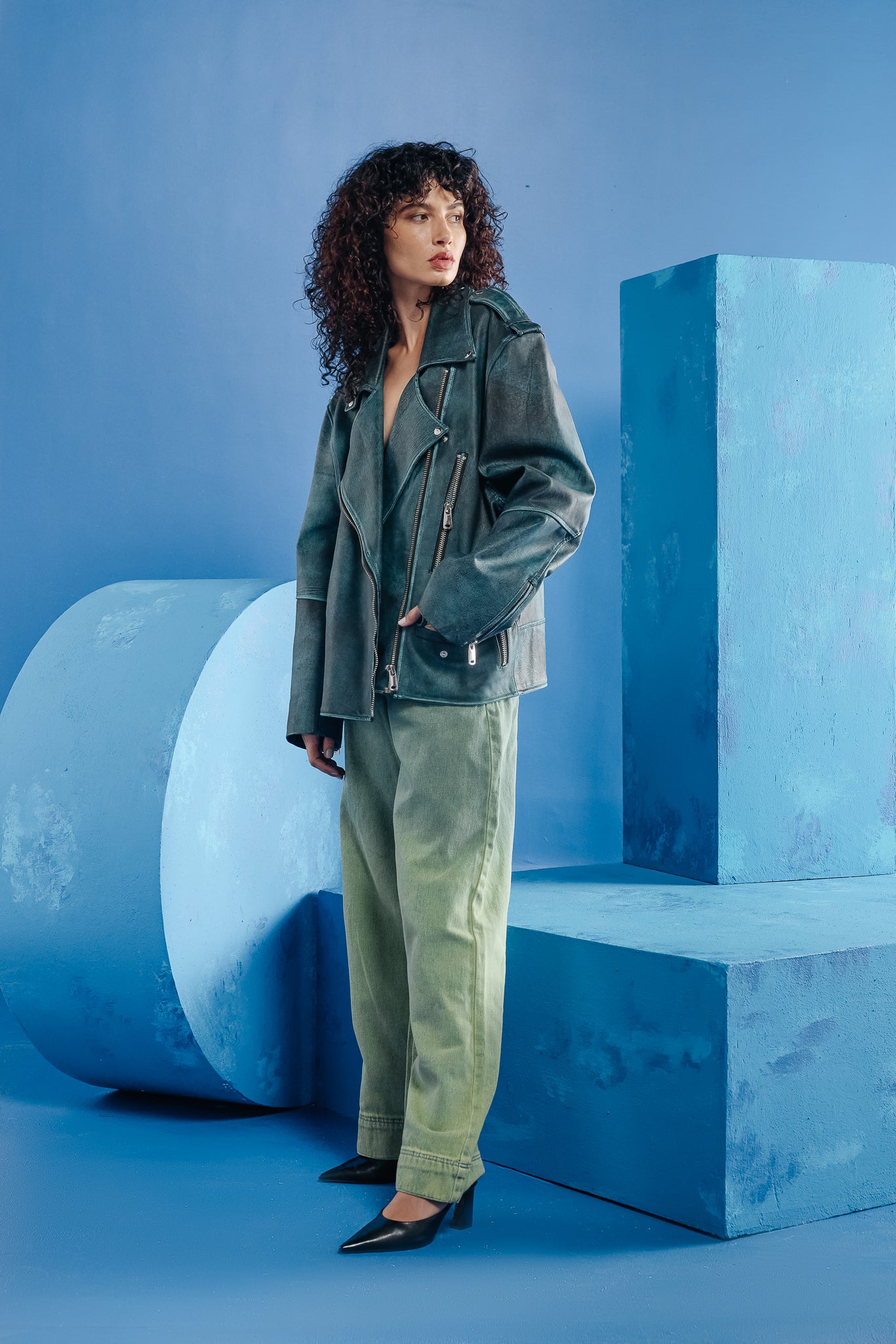 Leather Jacket Teal Blue