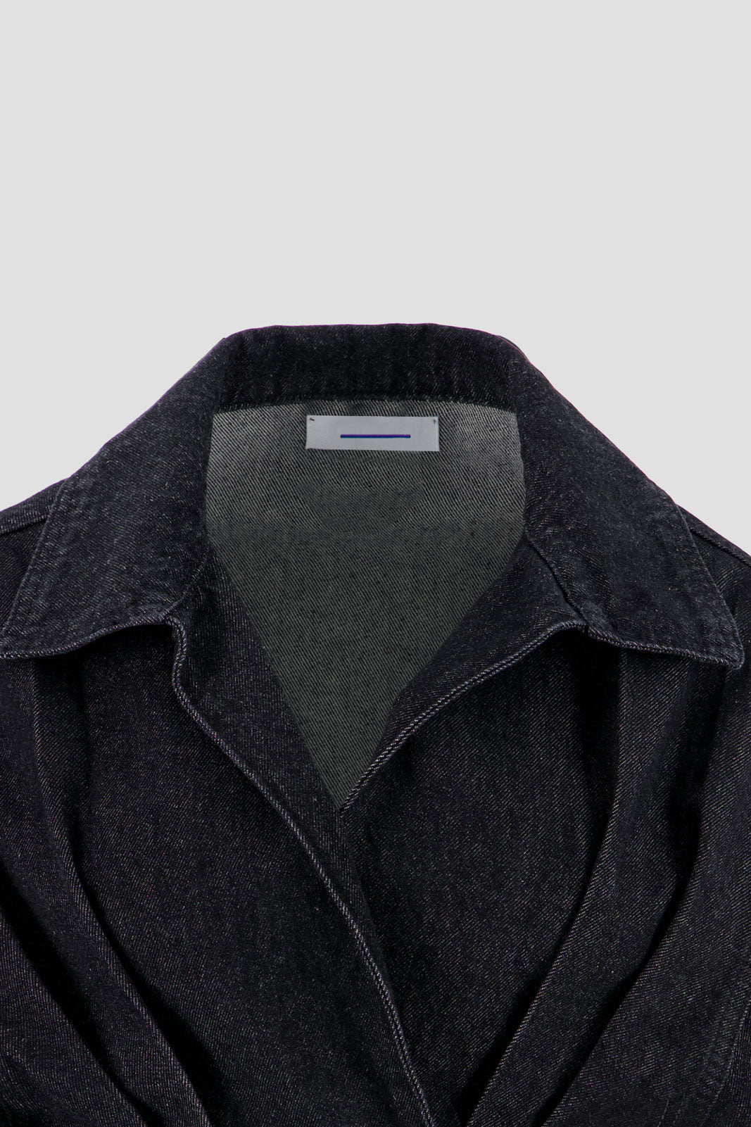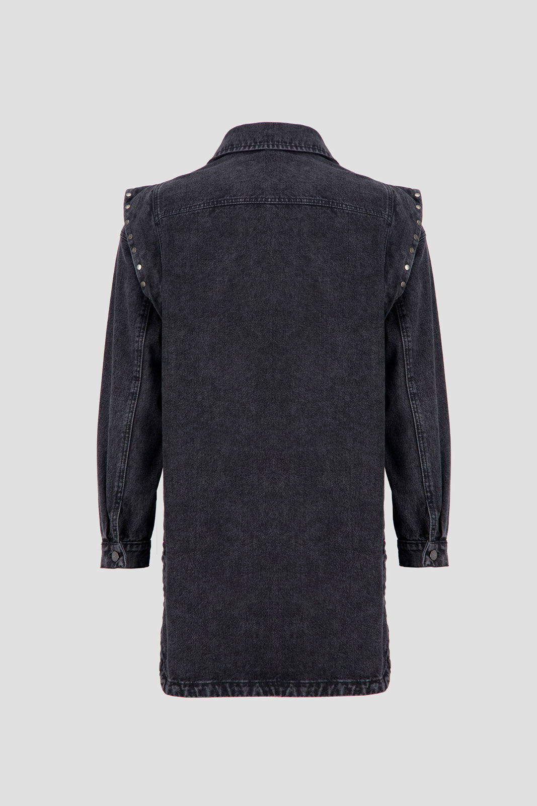 Shirt Dress with Studded Shoulder-Black Stone Wash