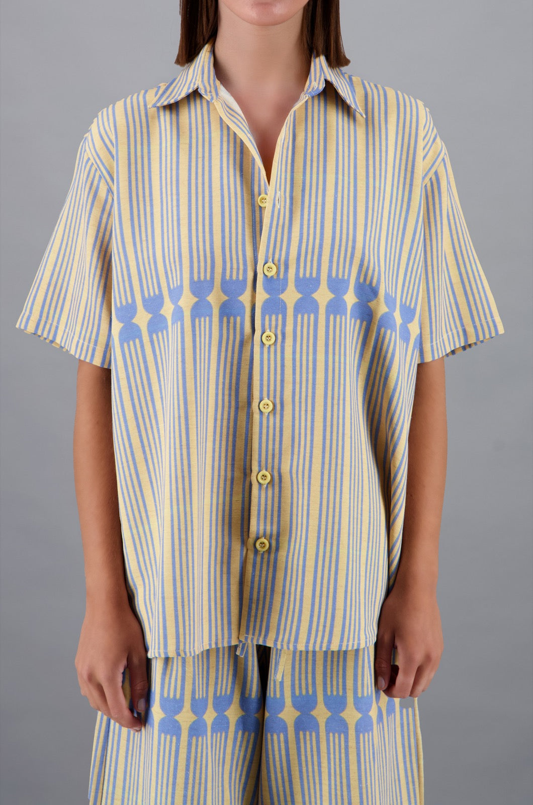 Tableware Shirt Yellow & Blue Print