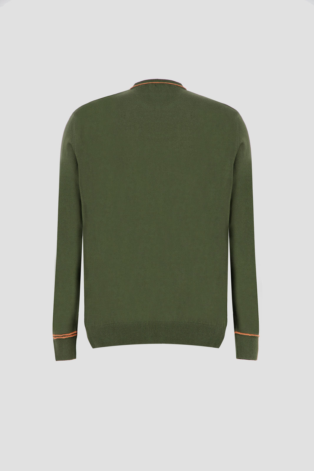 Long Sleeves Contrast T-Shirt - Olive With Orange