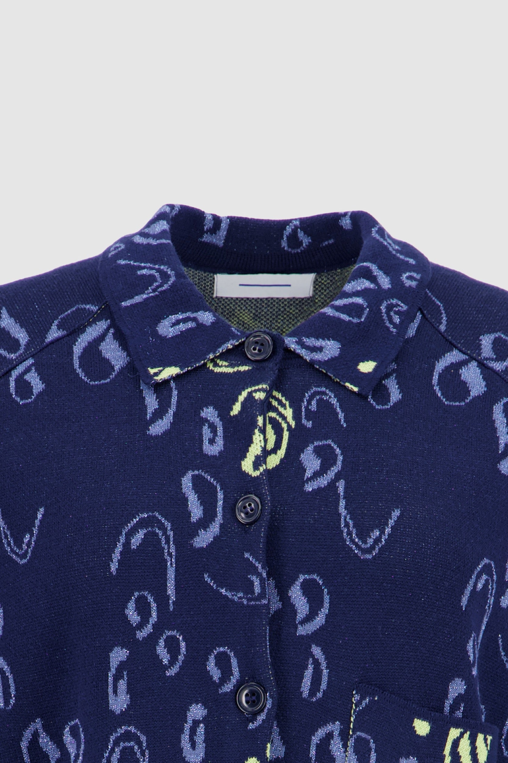 Button Down Jacquard Shirt Cardigan-NavyxMulticolor