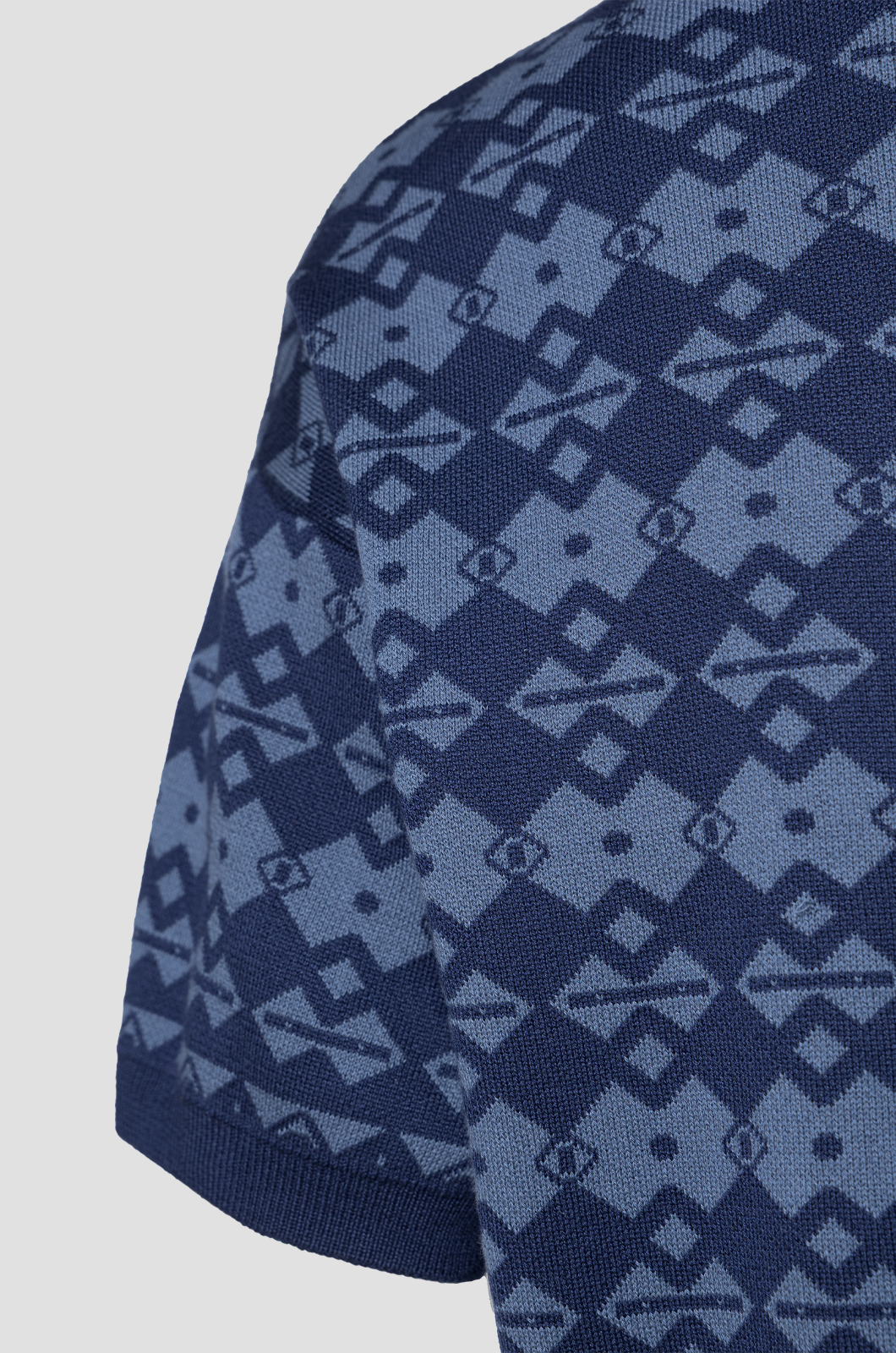 Relaxed fit half sleeve jacquard knit polo cardigan