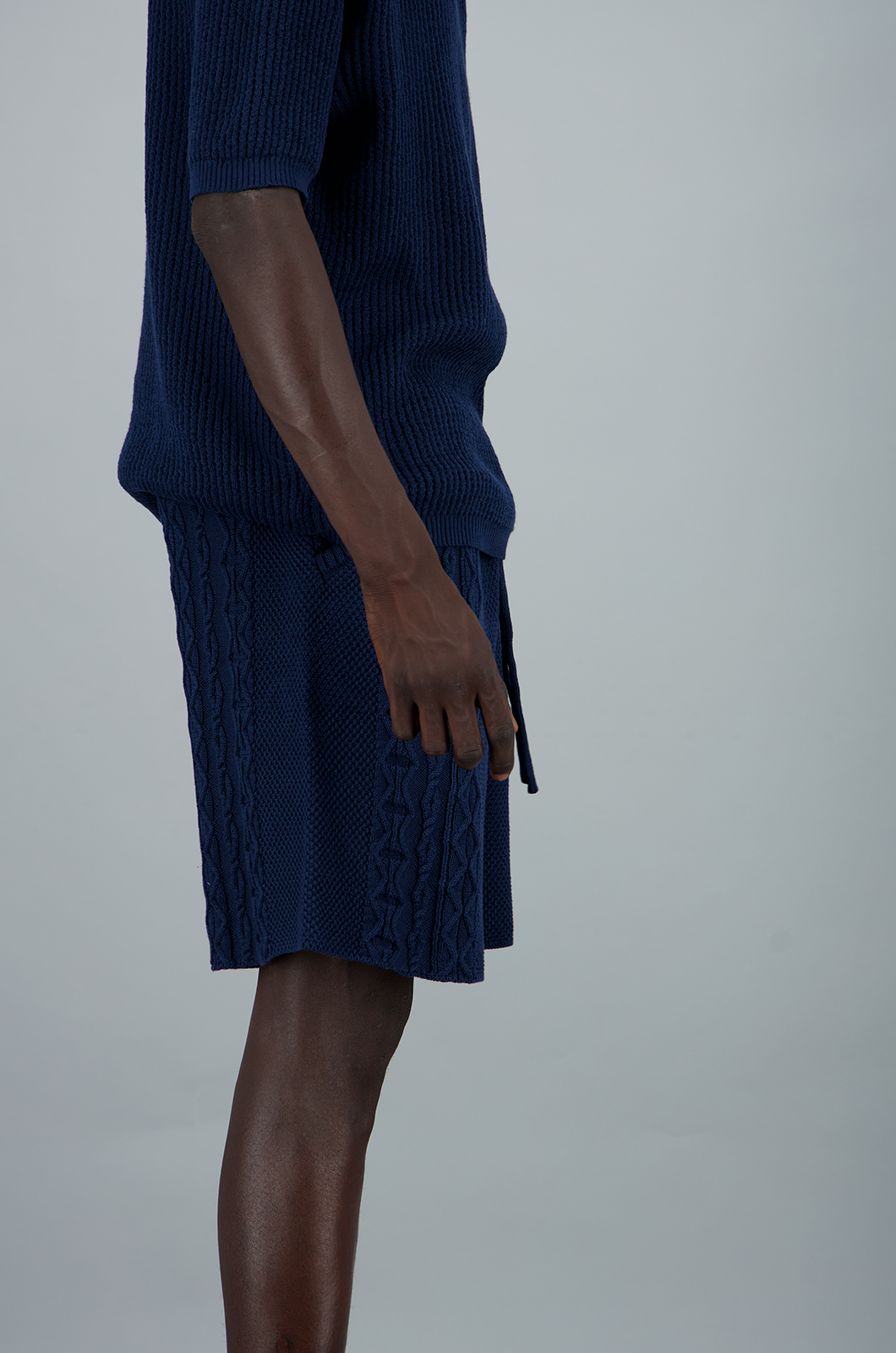 Relaxed fit Knit short with a ribbed waistband, and adjustable drawstring closure
